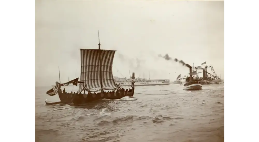 In 1893, Chicago hosted a world exposition to commemorate the 400th anniversary of Christopher Columbus’s “discovery” of America in 1492. At the exposition, the Americans showed reconstructions of Columbus’s three ships, the Niña, Pinta and Santa María. Norway’s official contribution was a replica of a stave church, but at the same time the Viking was sent across the Atlantic as an unofficial contribution.