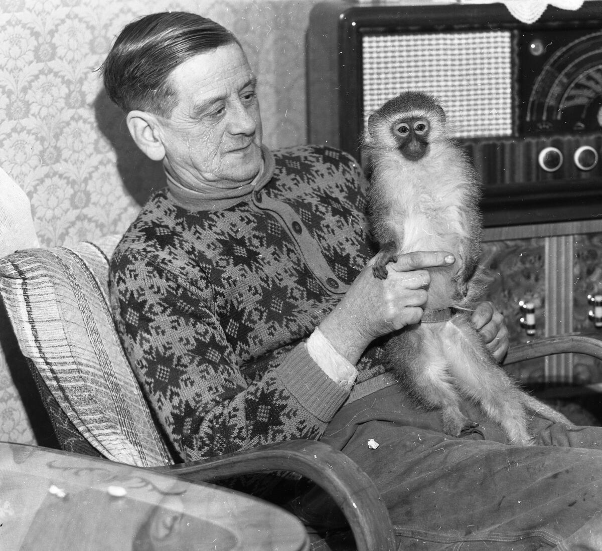 Hvem var denne mannen? Og hvorfor har han en ape på fanget?