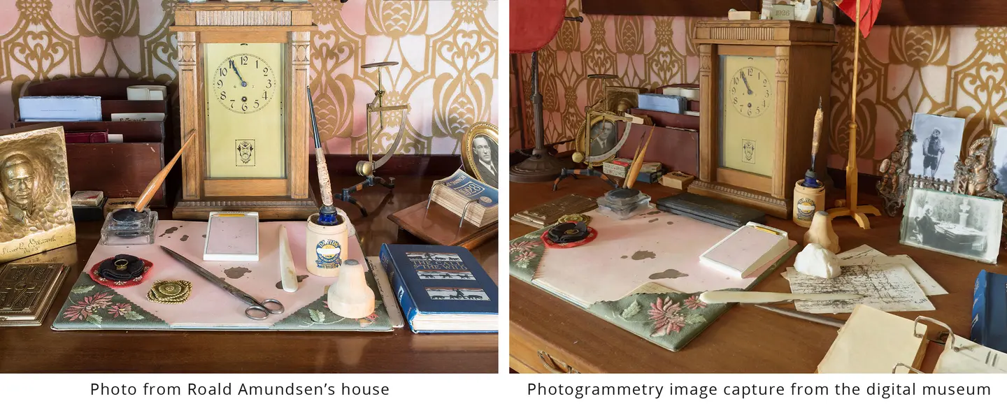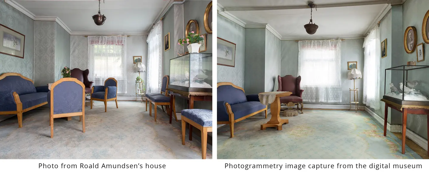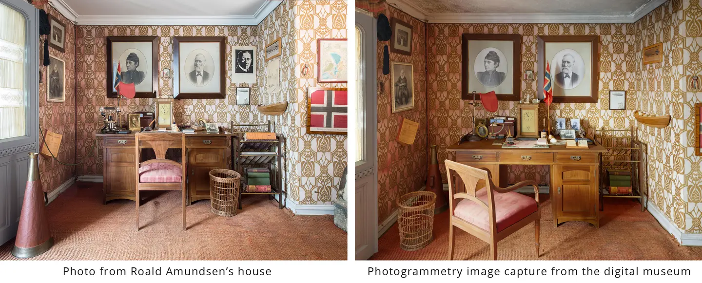 Vi har skannet hele huset med inventar, innvendig og utvendig, og laget en så realistisk digital modell at du vil tro du er i det virkelige Amundsens hjem.