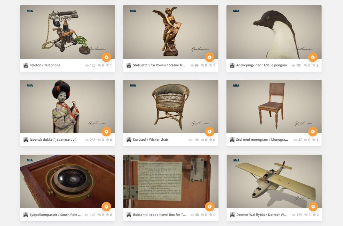 Her viser vi 3D-modeller av gjenstander i samlingen