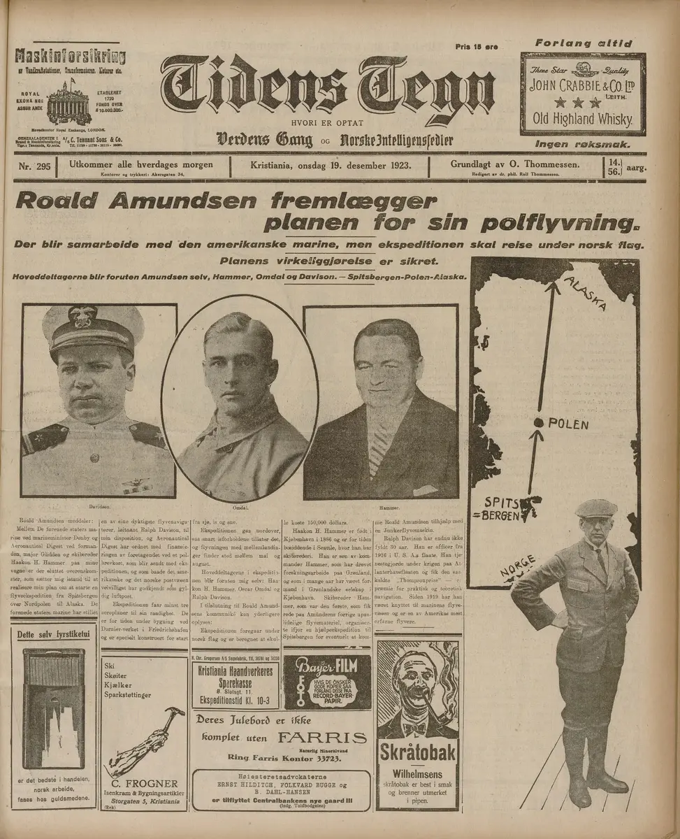 It is December 19, 1923, when the newspaper Tidens Tegn presents Amundsen’s new plan.