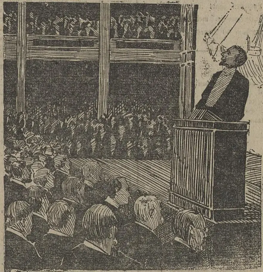 The Norwegian Geographical Society arranges a meeting in the great hall of the Old Lodge in Kristiania.