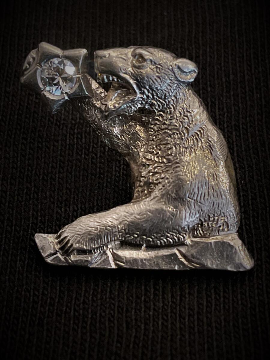Bestående av en oksydert isbjørn som strakk seg etter en diamant.
