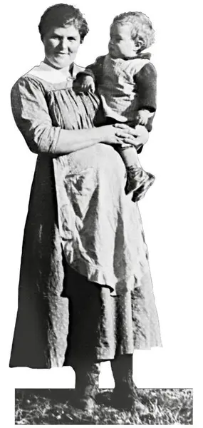 Et av menneskene du møter i utstillingen Mennesker og levekår. Skedsmo var blant de første kommunene som opprettet helsestasjoner for mødre og spebarn.