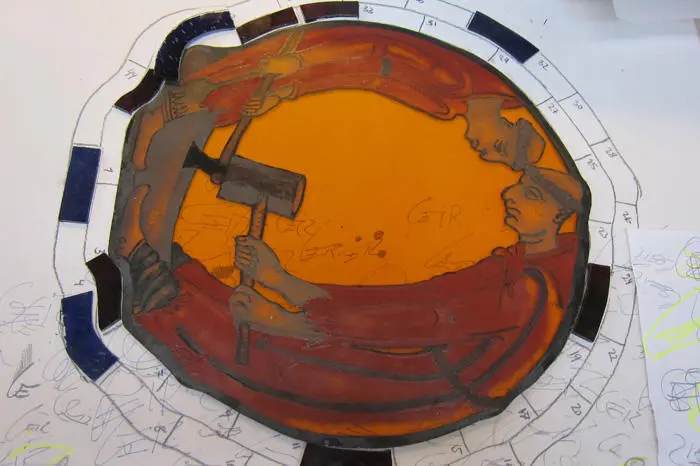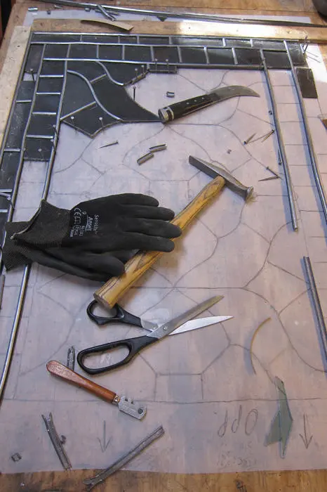 Blyglasshåndverkeren lager og restaurerer glassarbeider i vinduer, dører, fasader og interiører ved å skjære til og sette sammen fargede glassbiter i en blyprofil ved hjelp av smeltet tinn og lodding.