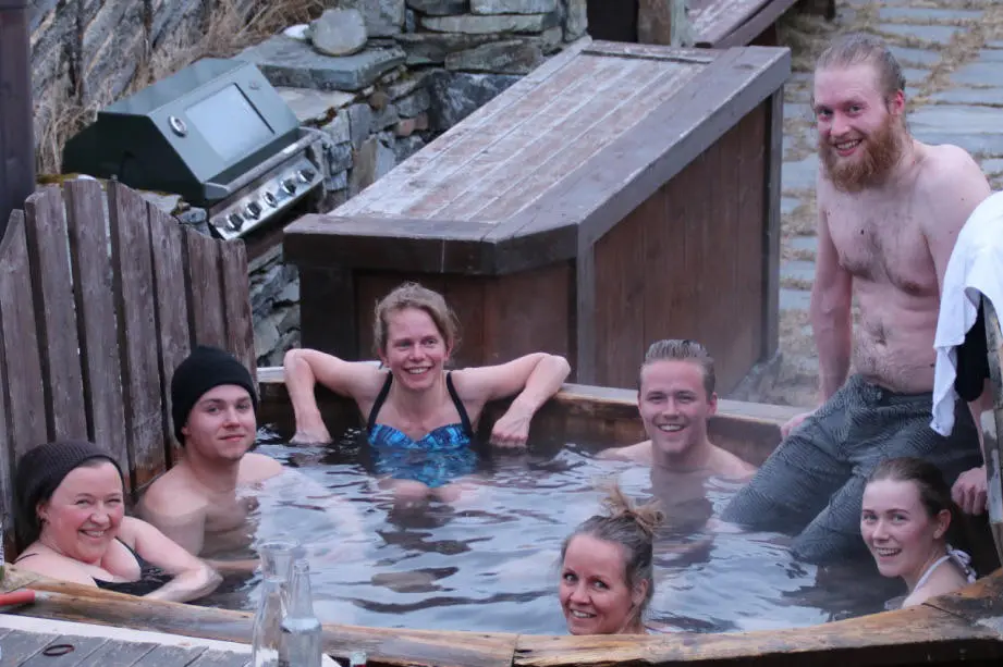 Endelig tid for avslapning og koseprat i stampen. Dagen har vært full av læring om hvordan vi kommuniserer og matcher våre kunder. Vi har lært alt om salgsprosesser, hvordan vi finner behovet til kunden og hvordan vi gjennomfører et overbevisende salg. Vi har lekt oss med rollespill og fått en alvorlig innføring i hvordan hjernen filtrerer og prosesserer informasjon. Vi har fått forståelse for at egne og andres overbevisninger, verdier og adferd danner grunnlaget for all utadrettet kommunikasjon. Ved å forstå kunder kan vi lettere gjennomføre salgsprosesser og by på oss selv, og nå vet vi at budskapet vil bli kommunisert på en riktig måte. PUHHH, jammen godt med et avslappende stampebad, her f.v.Kristine K, Marcus, Kristine T, Lars, Anders, Katrine og Lena foran. Bak kameraet Unni. - 24/24