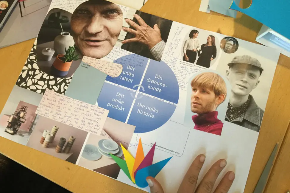 Etter fysiske prøvelser med ulike teknikker, metoder materialer og verktøy, ble neste samling igangsetting av tankeprosesser. Definere drømmer og visjoner ved å lage moodboards var hjemmelekse, og her fortsetter vi med å sette det hele i system. - 6/24