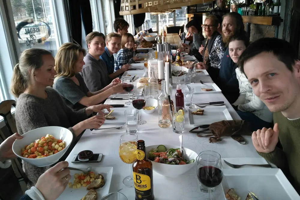 «Helvetesuka» til Unni er over, og nå kan vi endelig slappe av med en velfortjent middag med en smak av lokale råvarer på Hemsedal Cafe. I morgen blir det en kort oppsummering, evaluering og hjemreise med nyplantede hjernestier som vil ta oss frem til MÅLET vårt. Dette blir siste samling for disse supre lærlingene her, og de sendes hjem med en stor overbevisning om å LYKKES til å nå dit de vil og skape de RESULTATENE de ønsker seg ved å ha klare STRATEGIER og klare MÅLSETTINGER. Alt handler om å GJØRE og JUSTERE underveis. Og best av alt – fremtidig vennskap og et verdifullt nettverk som vil booste deg være til når du trenger det. LYKKE TIL som fremtidige tradisjonshåndverkere i bærekraftige håndverksfag!