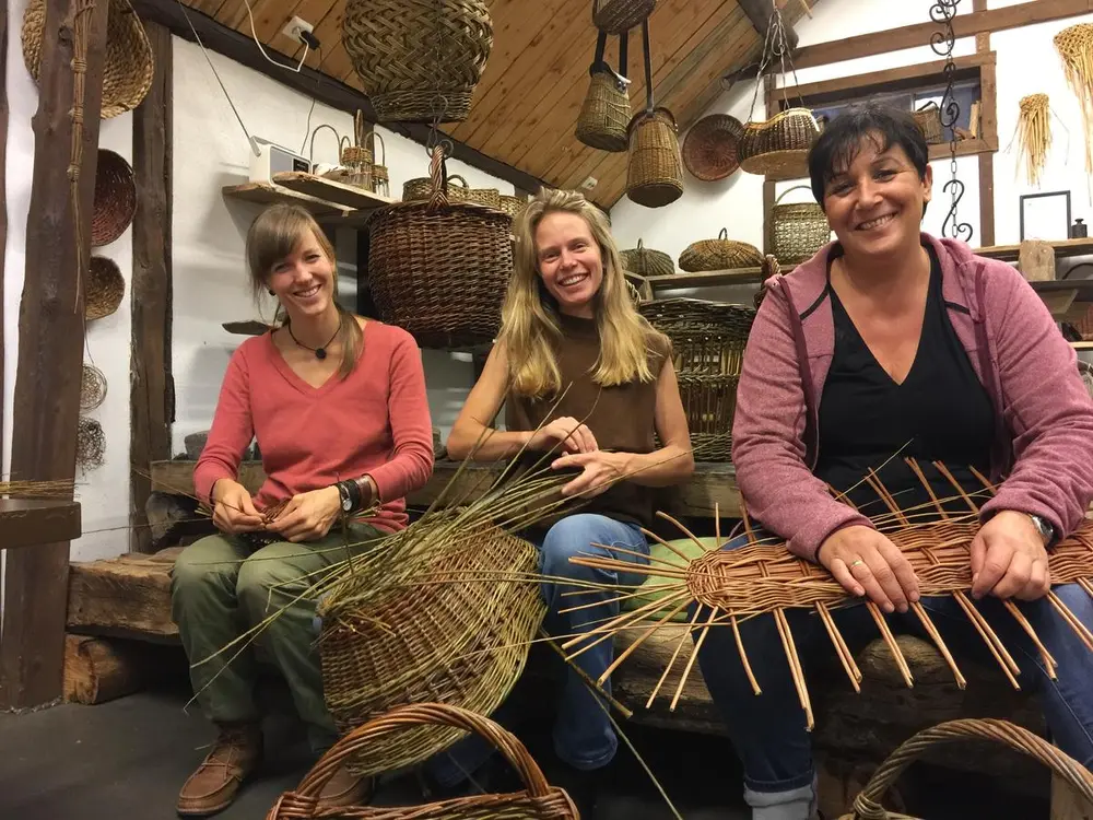 May-Tove Lindås var så heldig å få muligheten til å oppfylle sitt høyeste ønske - nemlig å bli svenn i kurvmakerfaget med norsk svennebrev! I dag er May-Tove fagansvarlig i egen kurvmakerbedrift, og hun har viderefører kunnskapen til to av sine lærlinger - Mari Fallet Mosand t.v. og Kristine Hognerud Træland i midten. De har fått kyndig veiledning og en enestående mulighet til å være med på å videreføre faget i Norge, og til å skape sine egne bærekraftige virksomheter.