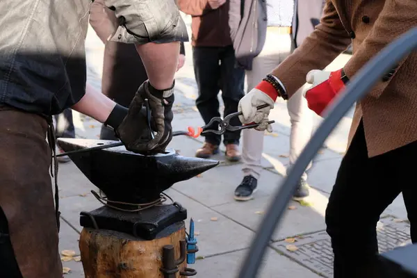 Valget falt på grillspyd og Johannes gjorde klar en vakker dekor ytterst på enden. Med dekorhammer og vridning med tang fikk Raja bidra til siste finish. Videre fikk Raja vri firkantjernet i skrustikka som Johannes hadde forberedt med et vakkert spor i midten.