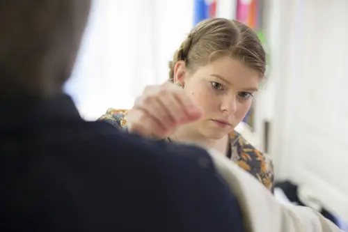 Anny Strand tok svennebrev for 3 år siden, og driver nå firmaet Bunadtilvirkerene sammen med en av sine læremestere, Joar Vaagø.