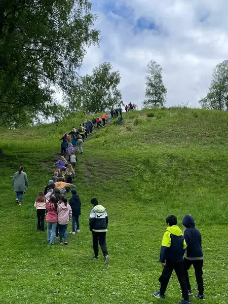 3. klassinger på besøk på Raknehaugen som en del av "Den kulturelle skolesekken".