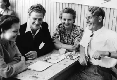 "Da vi kom ut hadde tyskerne kapitulert. Ja, vi elsker, flagg og hurra. .....Telefonvakt 23.30 til kl 1.00. Seiersrus. Var ute en tur i sivil, Frontbuchhandlung plyndret. Liv og leven. Folk ville. Tyskerne brenner papirer. Ordre pr. telf. (C..). Dra i sivil til Rådhusgt. 17 (partisekretariatet). Karabiner med." (7. mai 1945) (Johansen 1995, s. 23).
