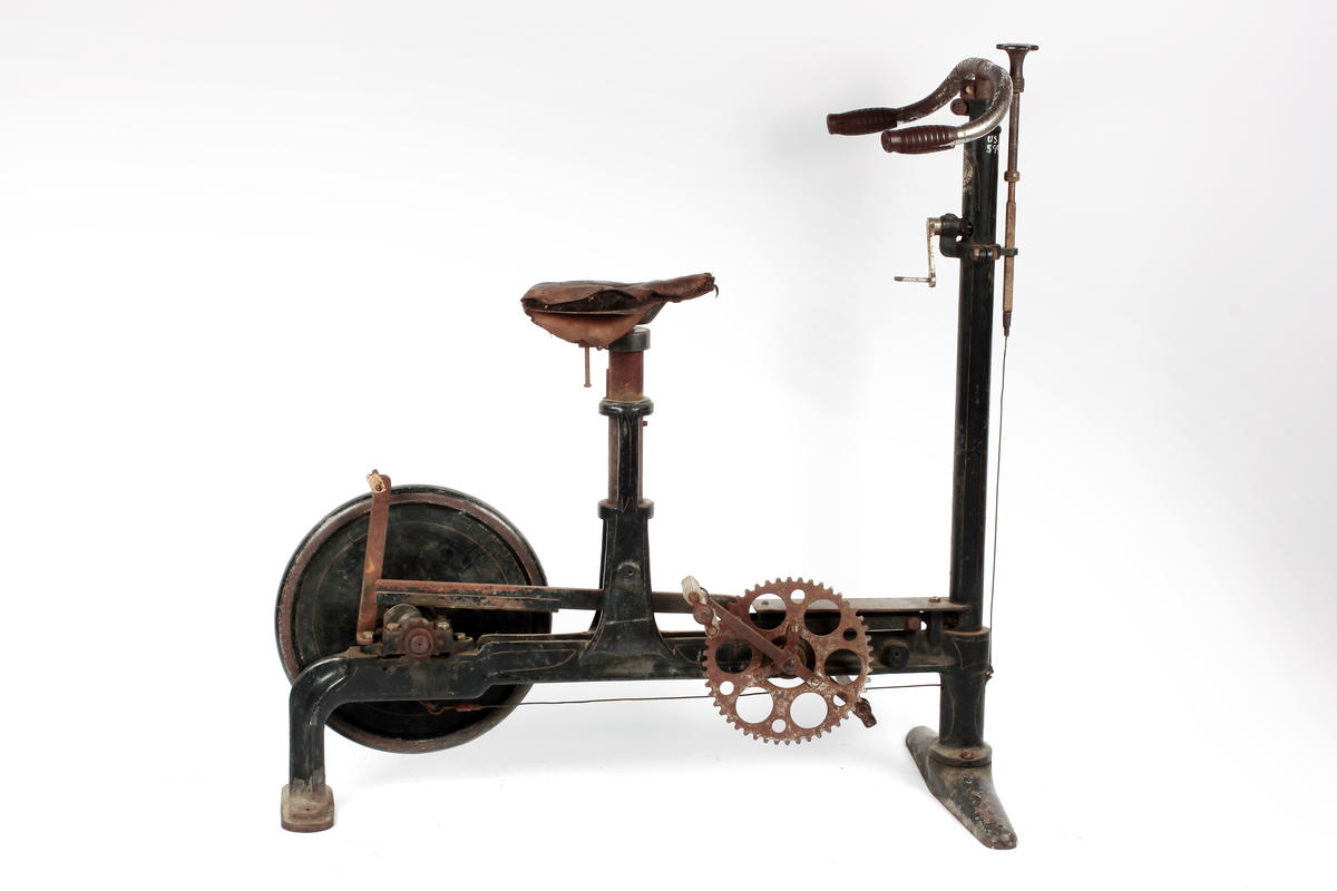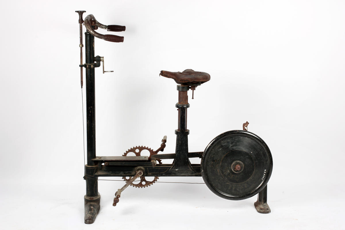 Karl Norbeck mosjonerte på denne ergometersykkelen, og den er litt spesiell. Den kalles Velotrab, Reitapparat im Hause (Ridningsapparat i huset). Når man trår på pedalene beveger setet seg opp og ned. Den skal gi den samme mosjonen man ville fått ved hesteridning, turgåing, klatring eller sykling.