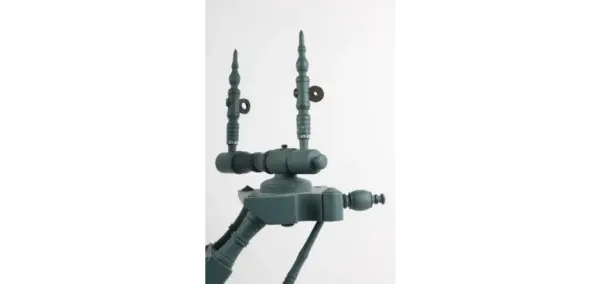 Som man kan se på bildene er denne rokken malt i en heldekkende blåfarge av nyere dato. Malingen dekker over en overflate som er tydelig bruksslitt. Mangel på slitasje i overmalingen viser at dette har skjedd etter at rokken gikk ut av bruk. Det er deler av gjenstanden som ikke er malt, og som tyder på at fargen tidligere har vært mørk blå/sort med innslag av lysere detaljer.
