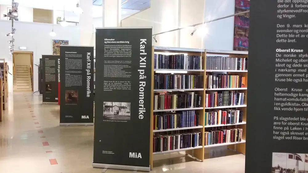 I 2017 ble utstillingen om Karl 12. på Romerike vist på Jessheim bibliotek. MiA/Trine Grønn Iversen