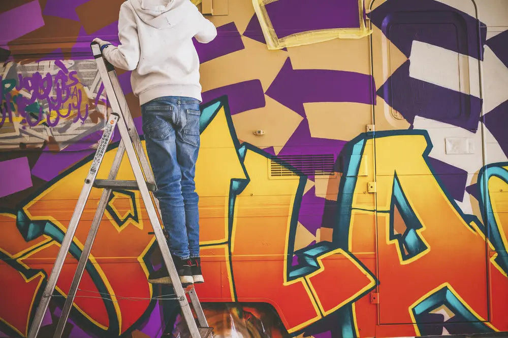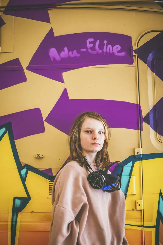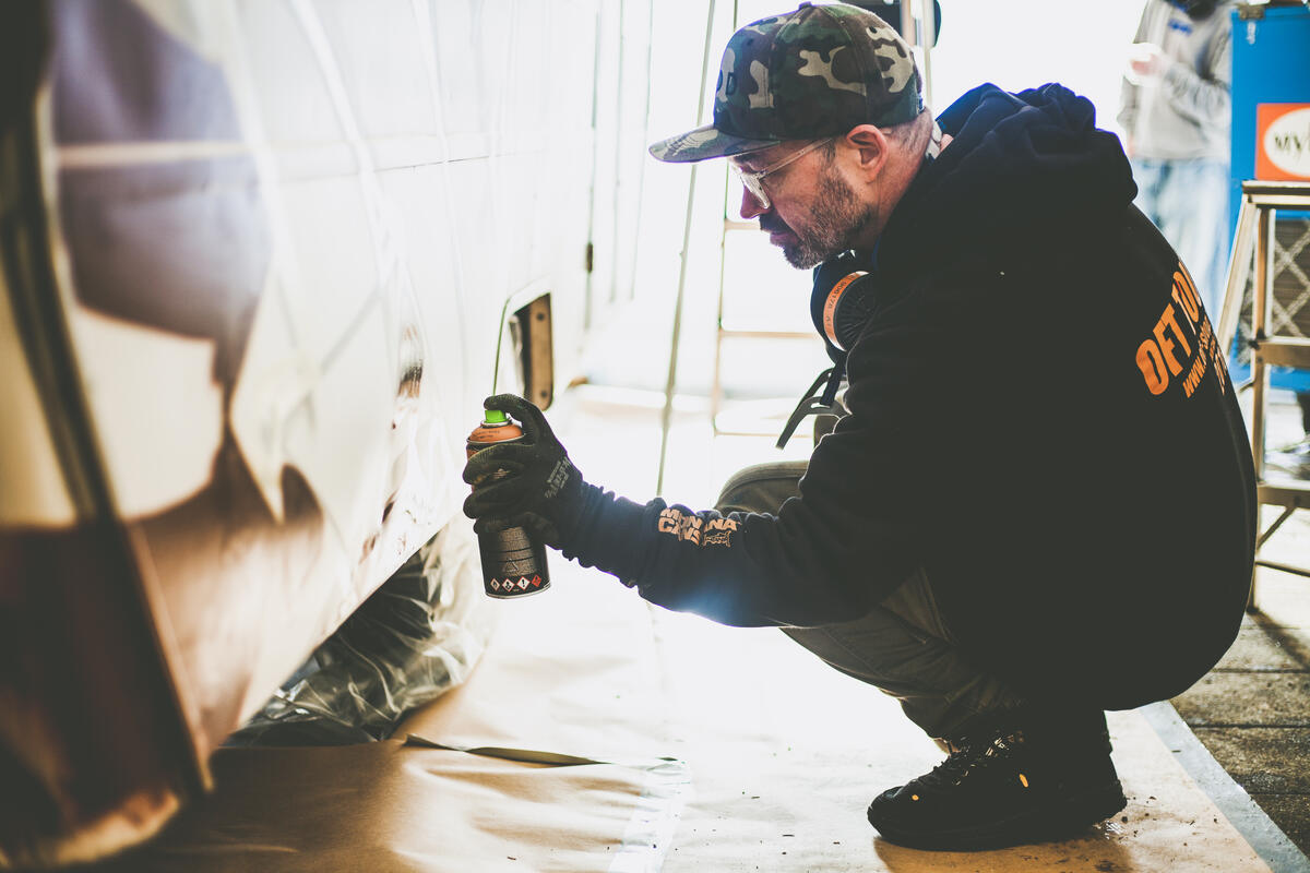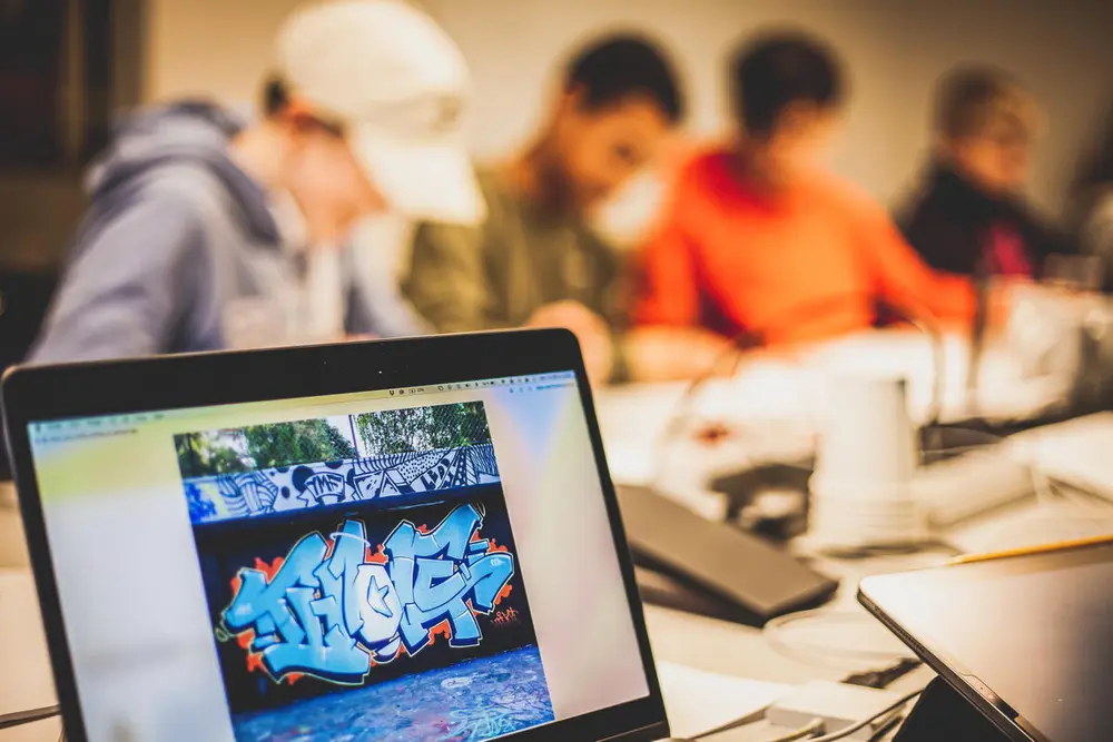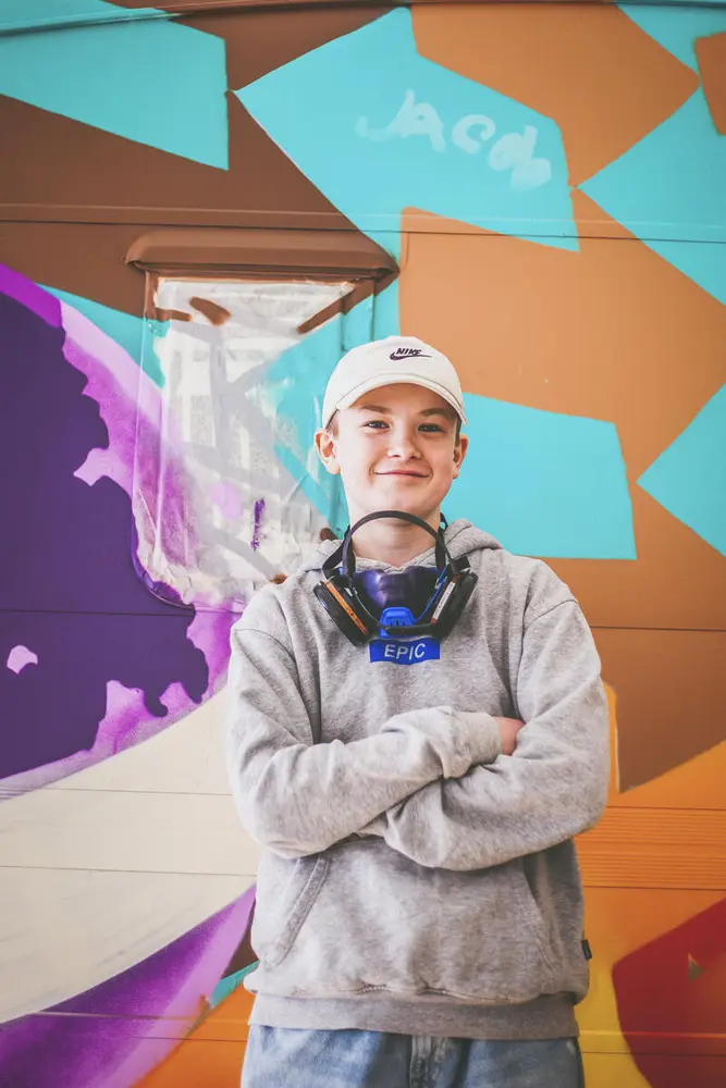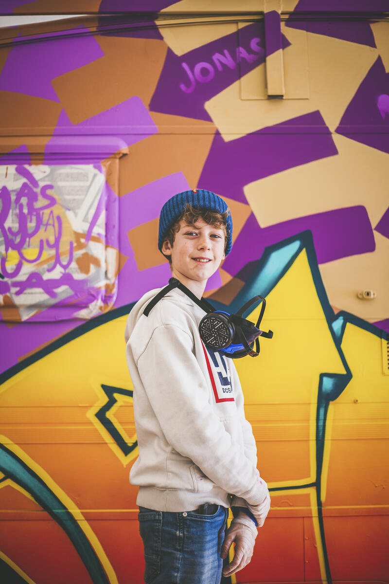 En av deltakerne på graffitikurset i vinterferien.