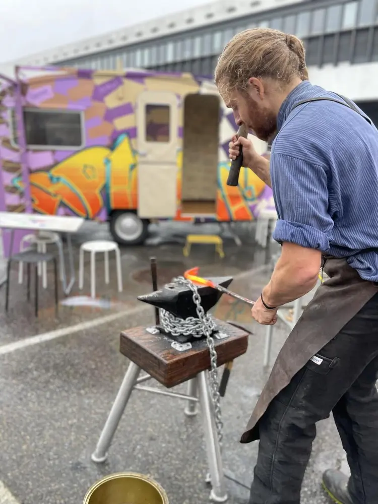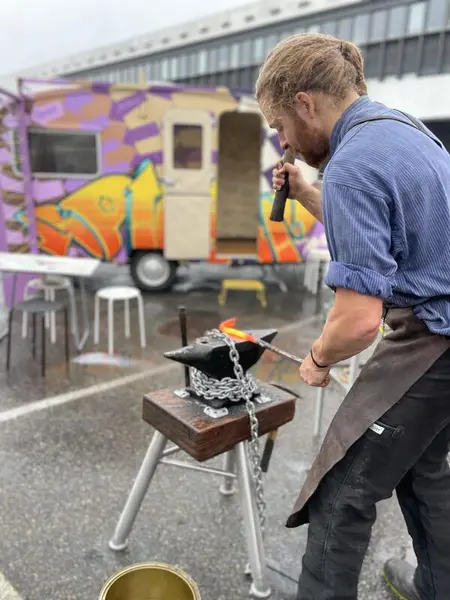 Smed foran PILA under Global Gathering på Jessheim. Samarbeid med Tradisjonshåndverk opplæringskontor og kompetansesenter.