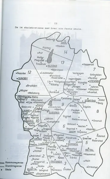 Ullensaker ble delt i fem skoledistrikter