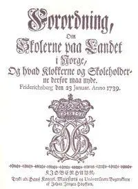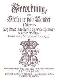 På denne tiden var vi fremdeles i union med Danmark, og det var den dansk-norske kongen Christian VI som la frem forordningen om "Skolerne paa landet i Norge" i 1739.