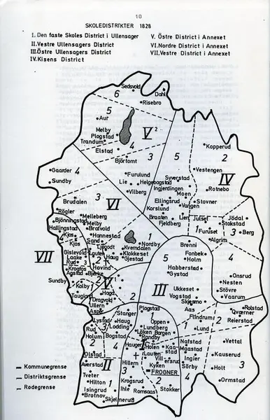 Skoledistrikter i Ullensaker i 1828.