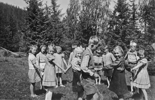 På skolen lekte vi sisten, banke på ringen, Hauk og due, siste par ut, slå på pinne. Jentene spilte «Katjan», Klampe. Utenfor skolen lekte vi også, hoppet paradis, gjemme seg, nippe klot, karre birr, slå munk, og slå kjegler (hjemmelagede). Og så hoppet vi tau, naturligvis.